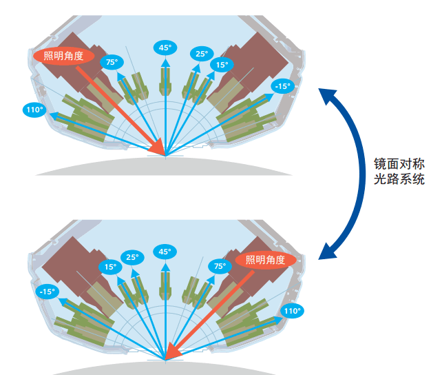CM-M6擁有圍繞其中心軸對稱的雙重照明/受光系統(tǒng)。