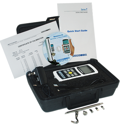 Series 7專業(yè)型數(shù)字推拉力計適用于一些要求精細嚴格的推拉力測試,測量范圍*大到2500N (根據(jù)型號)該設(shè)備精 度為+0. 1%具有 14000HZ高速采樣頻率業(yè)內(nèi)領(lǐng)先,針對于一些快速測試提 供更加準(zhǔn)確的測量結(jié)果。Series7 系列推拉力計除具有Series5所有功能外還具有高速連續(xù)采集功能可連續(xù)存儲5000個讀數(shù)到內(nèi)存采樣頻率高達14000HZ, 連腳踏開關(guān), 斷裂判斷, 1st 12nd峰值顯示,摩擦系數(shù)、測量單位及用戶自定義計量單位。為了提高工作效率,Series7系列加入自動輸出,自動存儲,自動清零,外部觸發(fā)功能以適應(yīng)各種測量需求。Series7 系列專業(yè)型推拉力計可以手持式操作或與MARK-10測量臺直接連接配合ESM303電動測量臺可做拉壓測試,具有斷裂停車動態(tài)力值保持,PC控制,循環(huán)測量過載保護位移控制等功能。標(biāo)配基本版數(shù)據(jù)傳輸軟件MESURTM Lite 可連續(xù)采集或單個采集測量數(shù)據(jù)一鍵導(dǎo)入EXce叻能方便進一步處理數(shù)據(jù),也可以選配高級版數(shù)據(jù)分析軟件MESURT gauge.