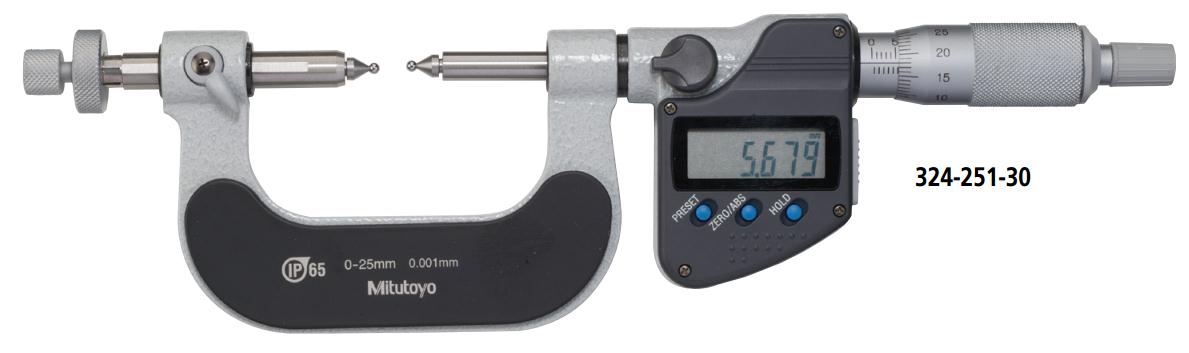 齒輪外徑千分尺 324, 124 系列 — 可更換球型測砧及心軸測針型,它具有碳化物測量面,并帶有鎖定裝置,以確保測量力的一致性。