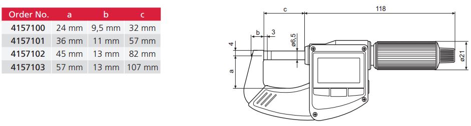 | 訂單號 | 測量范圍 mm | 測量范圍 inch | 數(shù)字增量(mm/英寸) | 誤差限度 μm | 軸直徑 | 軸螺距_mm | 測量力 (N) |